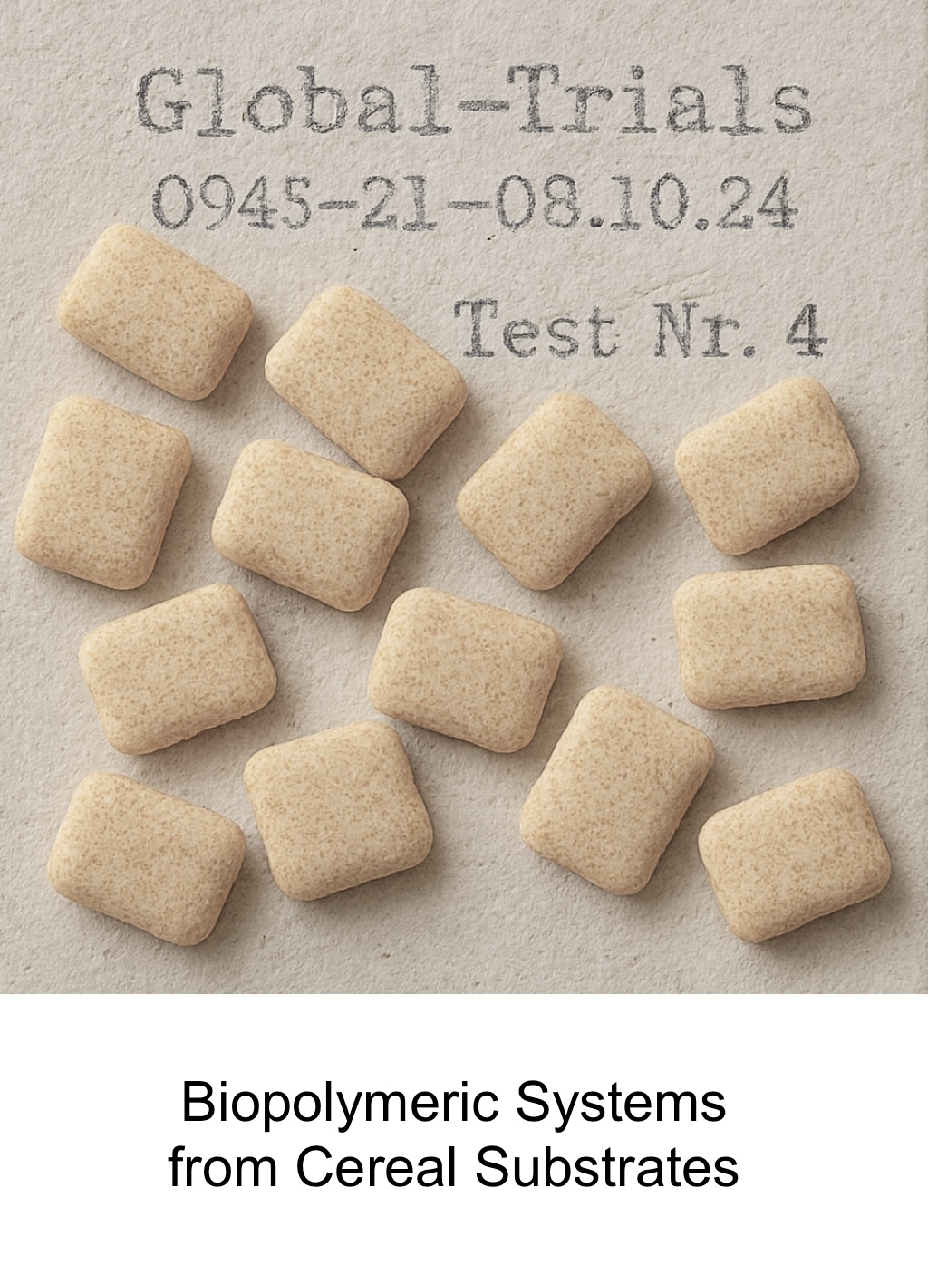 As part of our applied research into bioactive delivery systems, we tested a wide range of candidates — from specialized substrates to neutral organic materials. Through a series of experiments, we identified the optimal format: a stable, fully edible grain-based chewing matrix. Thanks to gentle processing and structural stabilization, the matrix retains key functional compounds — soluble fibers, amino acids, antioxidants, and micronutrients — while allowing precise control over texture and release behavior. Its high nutritional value and versatile properties make it suitable for a wide range of product formats, from functional foods to nutraceutical systems and biodegradable carriers. This is not just an alternative to conventional forms: the technology opens the door to entirely new categories of food products that have never been produced before. The matrix combines biological density, stable texture, and the ability to retain active compounds, making it a foundation for functional nutrition, adaptive supplements, and sustainable innovation. This development not only reduces industrial waste but also merges medicine, nutrition, and environmental engineering into a unified health platform.
