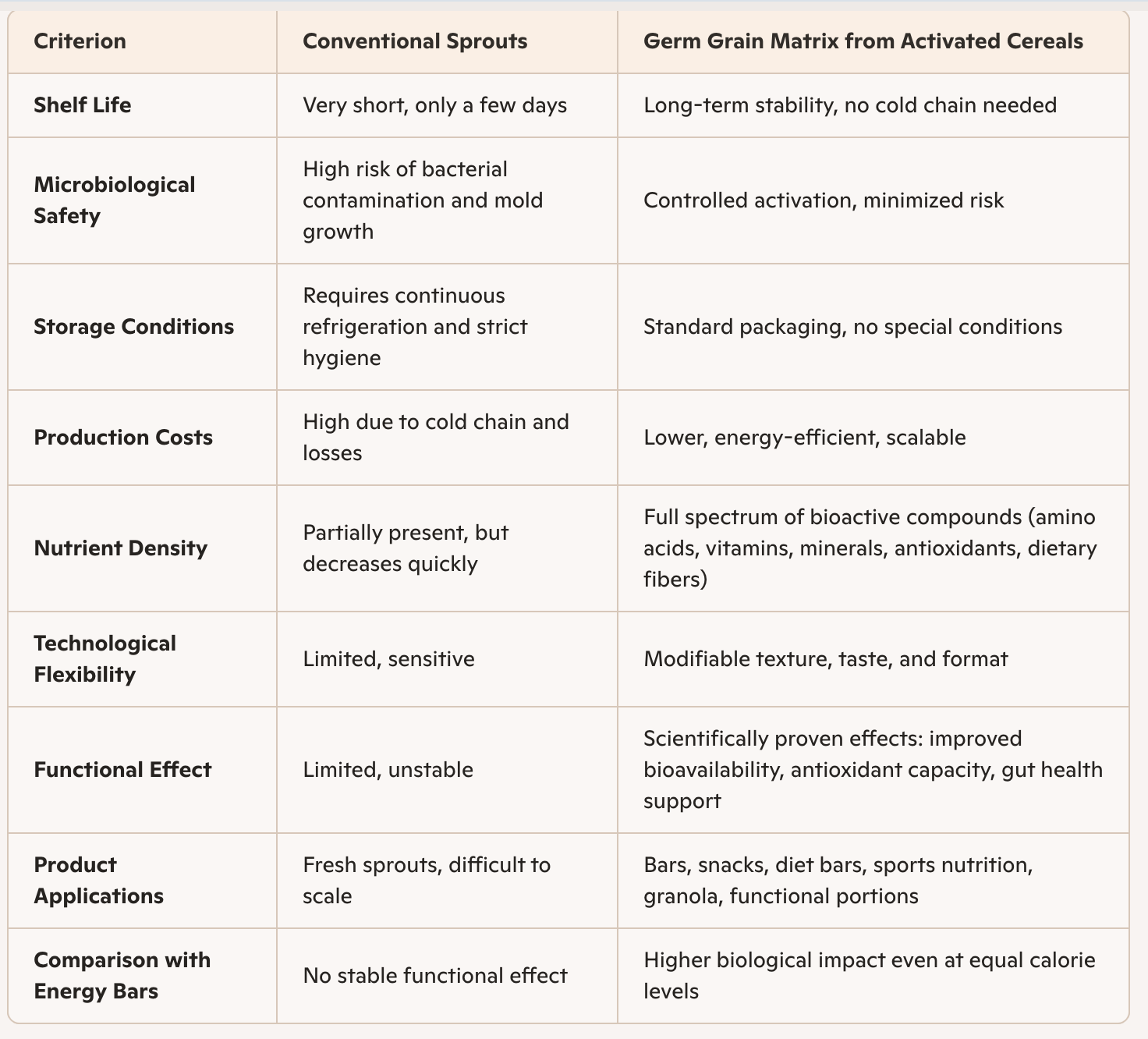 Comparison: Conventional Sprouts vs. Germ Grain Matrix